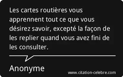 Les cartes routières vous apprennent tout ce que vous désirez savoir, excepté la façon de les replier quand vous avez fini de les consulter.