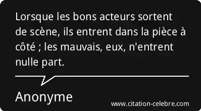 Lorsque les bons acteurs sortent de scène, ils entrent dans la pièce à côté ; les mauvais, eux, n'entrent nulle part.