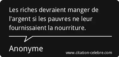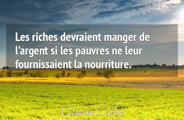 Les riches devraient manger de l'argent si les pauvres ne leur fournissaient la nourriture.