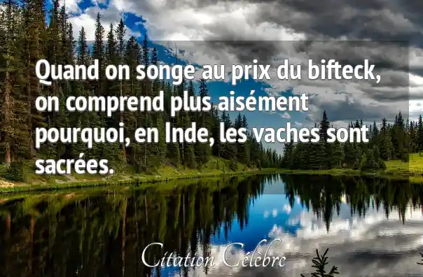 Quand on songe au prix du bifteck, on comprend plus aisément pourquoi, en Inde, les vaches sont sacrées.
