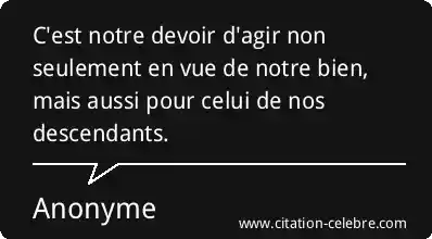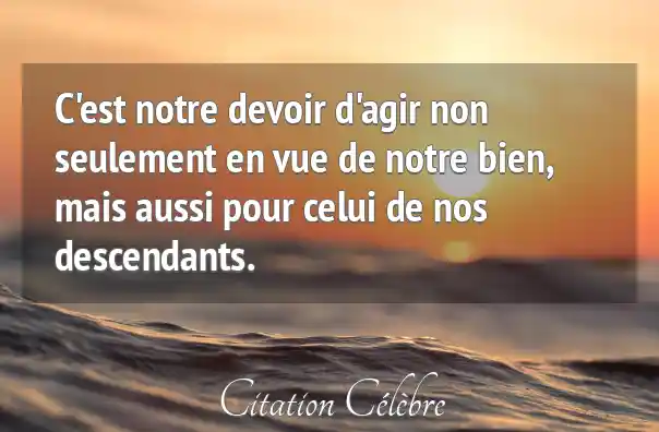 C'est notre devoir d'agir non seulement en vue de notre bien, mais aussi pour celui de nos descendants.