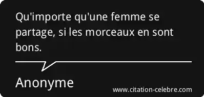 Qu'importe qu'une femme se partage, si les morceaux en sont bons.