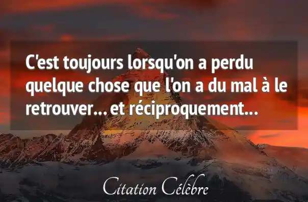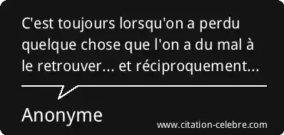 C'est toujours lorsqu'on a perdu quelque chose que l'on a du mal à le retrouver... et réciproquement...
