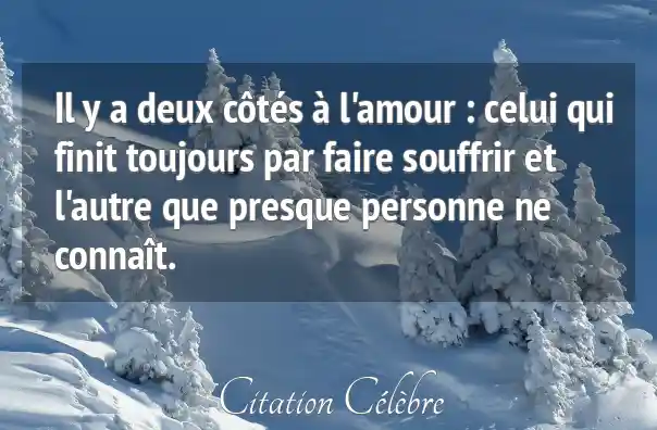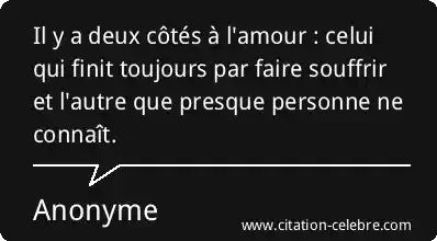 Il y a deux côtés à l'amour : celui qui finit toujours par faire souffrir et l'autre que presque personne ne connaît.
