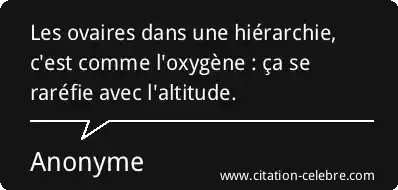 Les ovaires dans une hiérarchie, c'est comme l'oxygène : ça se raréfie avec l'altitude.