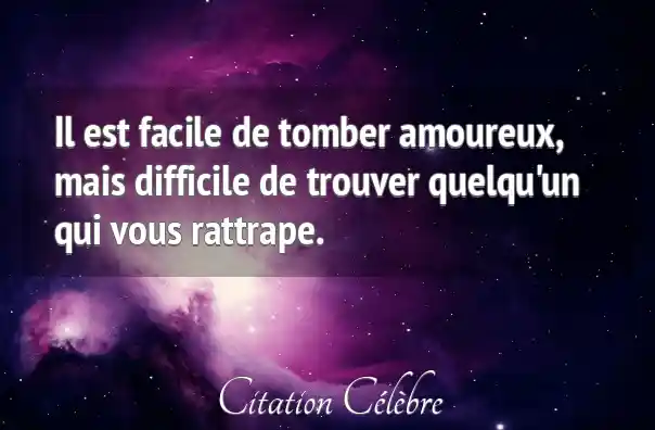 Il est facile de tomber amoureux, mais difficile de trouver quelqu'un qui vous rattrape.
