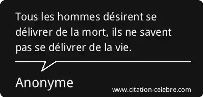 Tous les hommes désirent se délivrer de la mort, ils ne savent pas se délivrer de la vie.