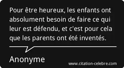 Pour être heureux, les enfants ont absolument besoin de faire ce qui leur est défendu, et c'est pour cela que les parents ont été inventés.