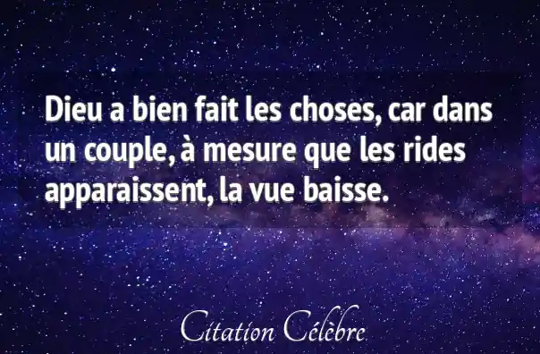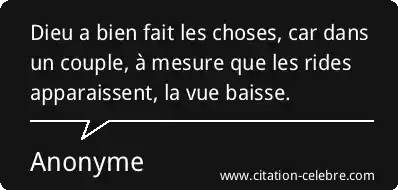 Dieu a bien fait les choses, car dans un couple, à mesure que les rides apparaissent, la vue baisse.