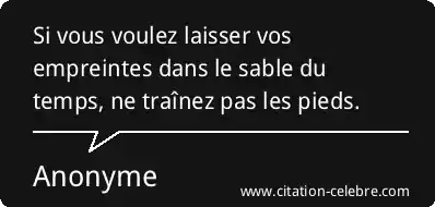 Si vous voulez laisser vos empreintes dans le sable du temps, ne traînez pas les pieds.