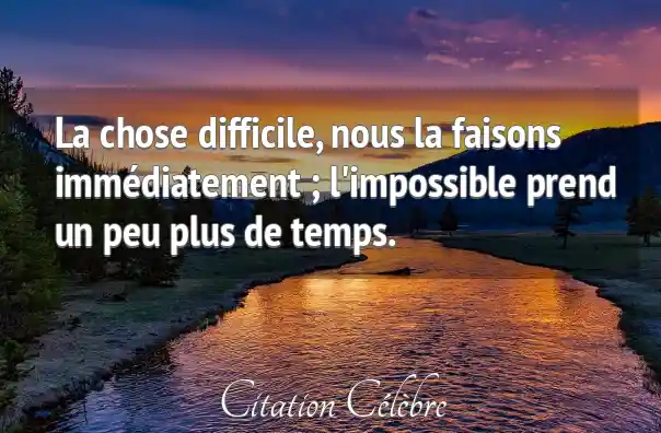 La chose difficile, nous la faisons immédiatement ; l'impossible prend un peu plus de temps.