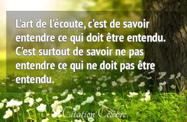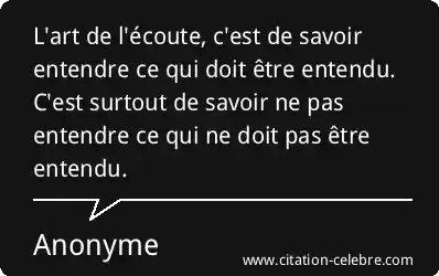 L'art de l'écoute, c'est de savoir entendre ce qui doit être entendu. C'est surtout de savoir ne pas entendre ce qui ne doit pas être entendu.