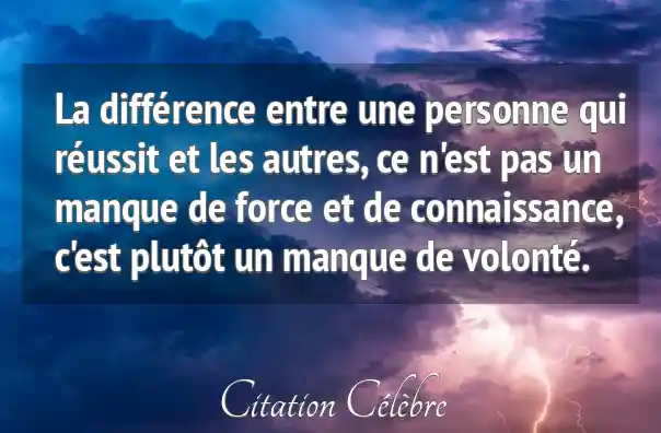 La différence entre une personne qui réussit et les autres, ce n'est pas un manque de force et de connaissance, c'est plutôt un manque de volonté.