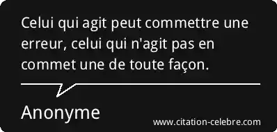 Celui qui agit peut commettre une erreur, celui qui n'agit pas en commet une de toute façon.