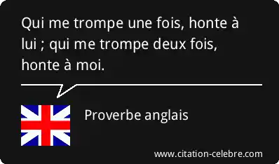 Proverbe  Anglais Moi : Qui me trompe une fois, honte à lui ; qui...