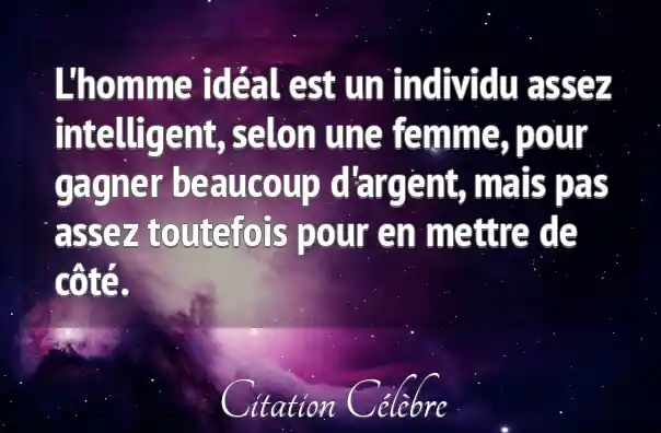 L'homme idéal est un individu assez intelligent, selon une femme, pour gagner beaucoup d'argent, mais pas assez toutefois pour en mettre de côté.