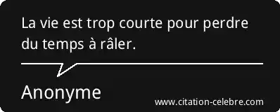 La vie est trop courte pour perdre du temps à râler.
