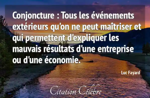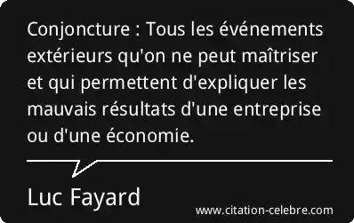 Conjoncture : Tous les événements extérieurs qu'on ne peut maîtriser et qui permettent d'expliquer les mauvais résultats d'une entreprise ou d'une économie.