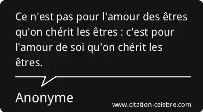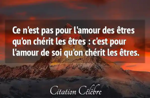 Ce n'est pas pour l'amour des êtres qu'on chérit les êtres : c'est pour l'amour de soi qu'on chérit les êtres.