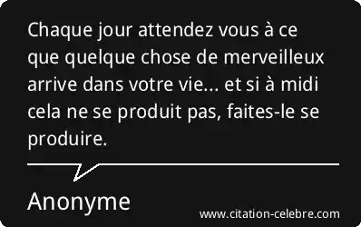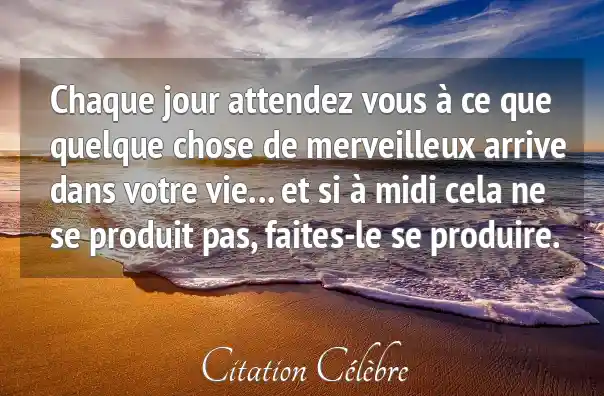 Chaque jour attendez vous à ce que quelque chose de merveilleux arrive dans votre vie... et si à midi cela ne se produit pas, faites-le se produire.