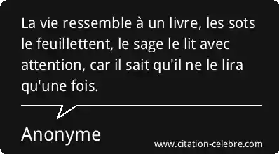 La vie ressemble à un livre, les sots le feuillettent, le sage le lit avec attention, car il sait qu'il ne le lira qu'une fois.