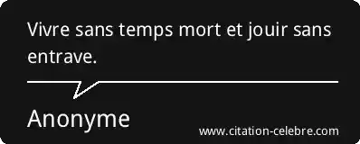Vivre sans temps mort et jouir sans entrave.