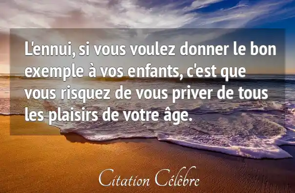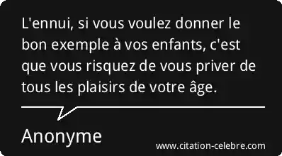 L'ennui, si vous voulez donner le bon exemple à vos enfants, c'est que vous risquez de vous priver de tous les plaisirs de votre âge.