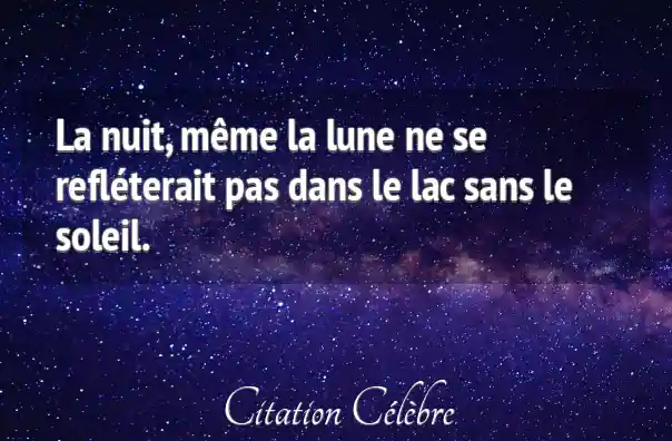 La nuit, même la lune ne se refléterait pas dans le lac sans le soleil.