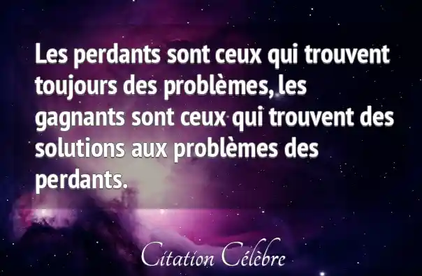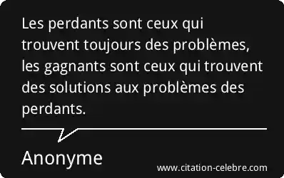 Les perdants sont ceux qui trouvent toujours des problèmes, les gagnants sont ceux qui trouvent des solutions aux problèmes des perdants.