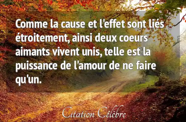 Comme la cause et l'effet sont liés étroitement, ainsi deux coeurs aimants vivent unis, telle est la puissance de l'amour de ne faire qu'un.