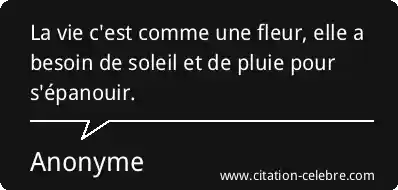 La vie c'est comme une fleur, elle a besoin de soleil et de pluie pour s'épanouir.