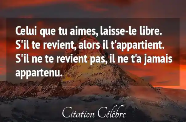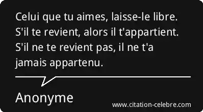 Celui que tu aimes, laisse-le libre. S'il te revient, alors il t'appartient. S'il ne te revient pas, il ne t'a jamais appartenu.