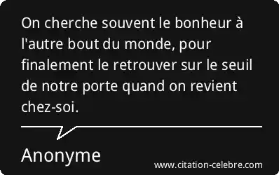 Citation Anonyme bonheur : On cherche souvent le bonheur à l'autre bout du monde,...