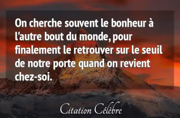 On cherche souvent le bonheur à l'autre bout du monde, pour finalement le retrouver sur le seuil de notre porte quand on revient chez-soi.