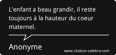 L'enfant a beau grandir, il reste toujours à la hauteur du coeur maternel.