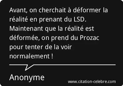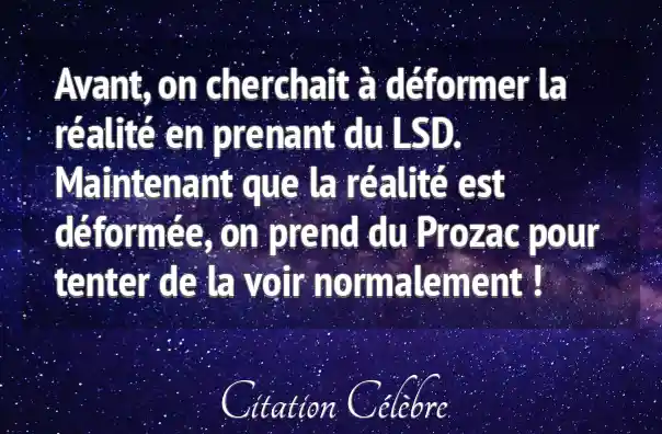 Avant, on cherchait à déformer la réalité en prenant du LSD. Maintenant que la réalité est déformée, on prend du Prozac pour tenter de la voir normalement !
