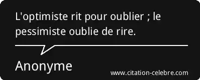 L'optimiste rit pour oublier ; le pessimiste oublie de rire.