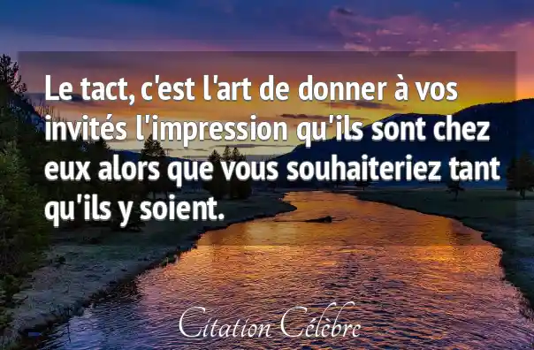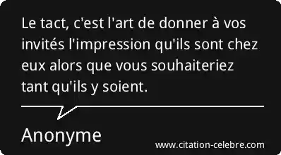 Le tact, c'est l'art de donner à vos invités l'impression qu'ils sont chez eux alors que vous souhaiteriez tant qu'ils y soient.