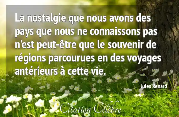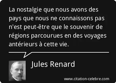 La nostalgie que nous avons des pays que nous ne connaissons pas n'est peut-être que le souvenir de régions parcourues en des voyages antérieurs à cette vie.