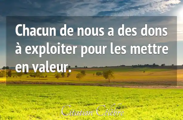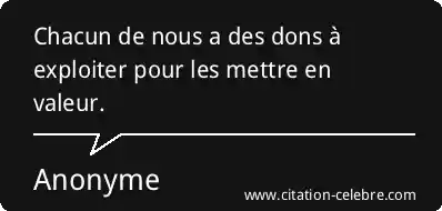 Chacun de nous a des dons à exploiter pour les mettre en valeur.