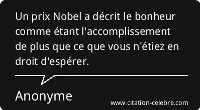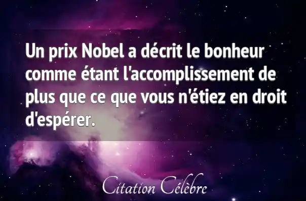 Un prix Nobel a décrit le bonheur comme étant l'accomplissement de plus que ce que vous n'étiez en droit d'espérer.