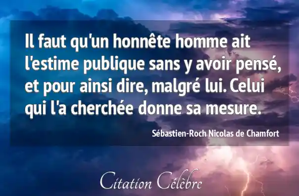 Il faut qu'un honnête homme ait l'estime publique sans y avoir pensé, et pour ainsi dire, malgré lui. Celui qui l'a cherchée donne sa mesure.