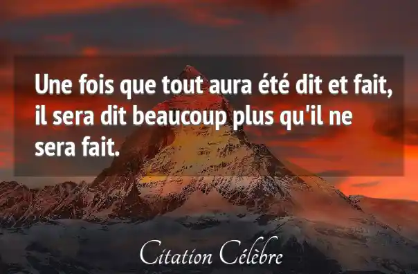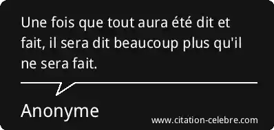 Une fois que tout aura été dit et fait, il sera dit beaucoup plus qu'il ne sera fait.