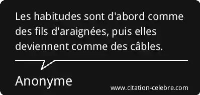 Les habitudes sont d'abord comme des fils d'araignées, puis elles deviennent comme des câbles.