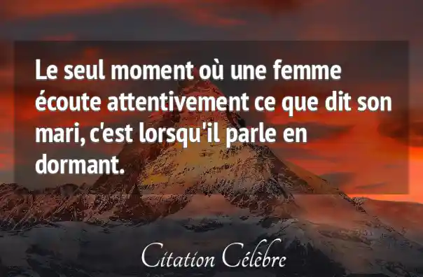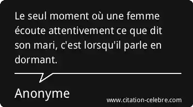 Le seul moment où une femme écoute attentivement ce que dit son mari, c'est lorsqu'il parle en dormant.