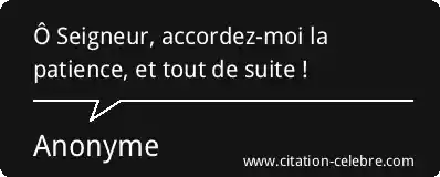 Ô Seigneur, accordez-moi la patience, et tout de suite !