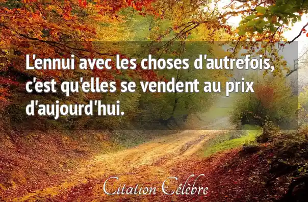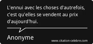 L'ennui avec les choses d'autrefois, c'est qu'elles se vendent au prix d'aujourd'hui.