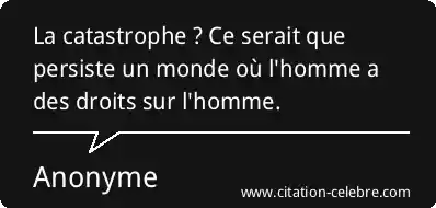 La catastrophe ? Ce serait que persiste un monde où l'homme a des droits sur l'homme.