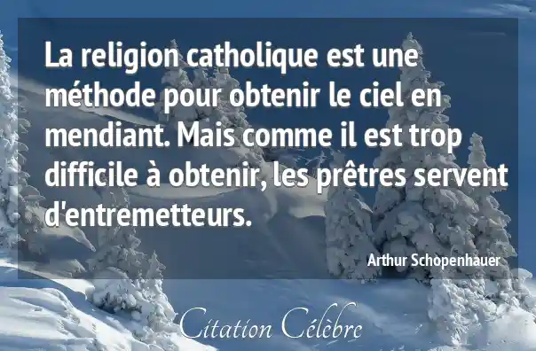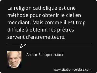 La religion catholique est une méthode pour obtenir le ciel en mendiant. Mais comme il est trop difficile à obtenir, les prêtres servent d'entremetteurs.