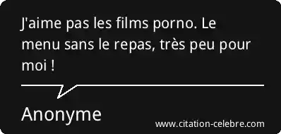 J'aime pas les films porno. Le menu sans le repas, très peu pour moi !
